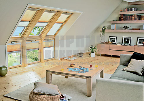 Оригинальное архитектурное решение для мансардных помещений с высоким пристенком. Позволяет получить полный, ничем не ограниченный обзор.